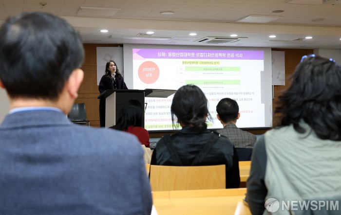 [서울=뉴스핌] 정일구 기자 = 채지민 성신여자대학교 교수가 9일 오후 서울 성북구 성신여대 성신관에서 열린 로컬디자인정책연구소 개소식에서 연구소 비전 및 운영 방향을 발표하고 있다. 2026.01.09 mironj19@newspim.com