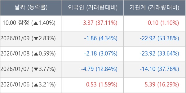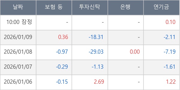 [표] 주요 기관별 순매매량 (단위 만주)