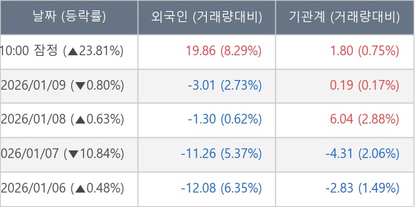 [장중수급포착] 성호전자, 외국인/기관 동시 순매수… 주가 +23.81%