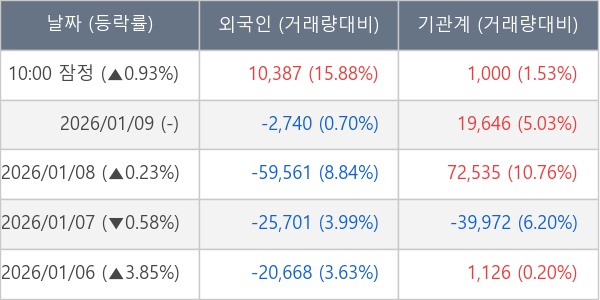 [표] 외국인ㆍ기관 순매매량 (단위 주)
