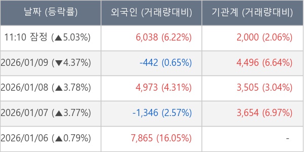 [표] 주요 기관별 순매매량 (단위 주)