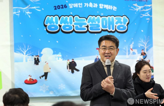 [서울=뉴스핌] 오승록 노원구청장이 12일 오전 서울 노원구 서울과학기술대학교 종합운동장에서 ‘2026 씽씽 눈썰매장 장애인 가족 초청 행사’에 참석해 인사말을 하고 있다. 노원구는 매년 겨울철 눈썰매장과 여름철 물놀이장을 하루 휴장해 장애인 가족이 안전하고 편안한 환경에서 여가를 즐길 수 있도록 초청 행사를 마련해 오고 있다. 이번 겨울에도 지역 내 장애인과 가족, 활동지원사 등 약 500여 명이 참여해 눈썰매와 다양한 겨울 놀이를 자유롭게 즐겼다. 오승록 노원구청장은 “오늘 하루만큼은 장애인 당사자와 가족 여러분이 부담없이 편안하게 즐기며 소중한 추억을 쌓는 시간이 되길 바란다”며 “앞으로도 일상의 장벽을 낮춰 모두가 편안하게 여가를 즐길 수 있는 환경을 만들어가겠다”고 말했다. [사진=노원구청] 2026.01.12 photo@newspim.com