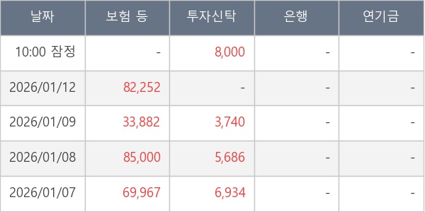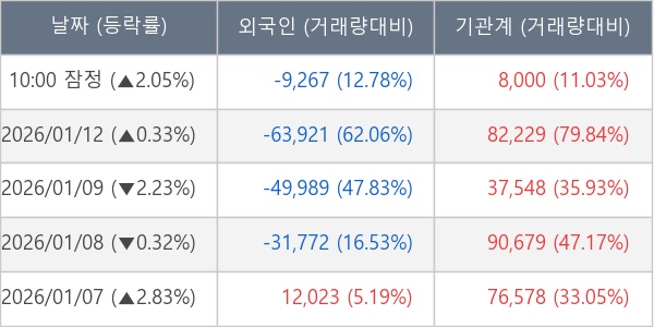 [표] 주요 기관별 순매매량 (단위 주)