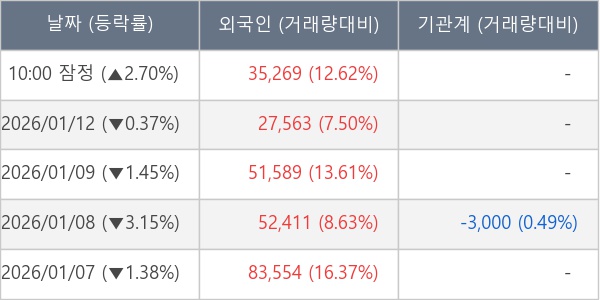 [표] 외국인ㆍ기관 순매매량 (단위 주)