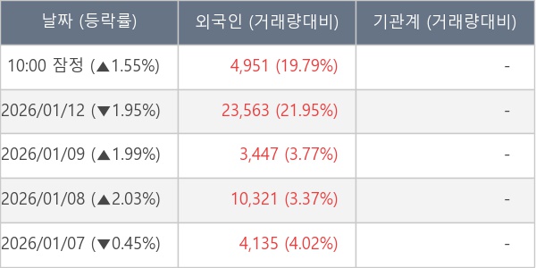 [표] 외국인ㆍ기관 순매매량 (단위 주)