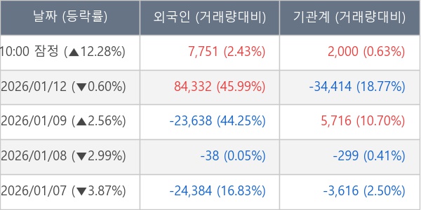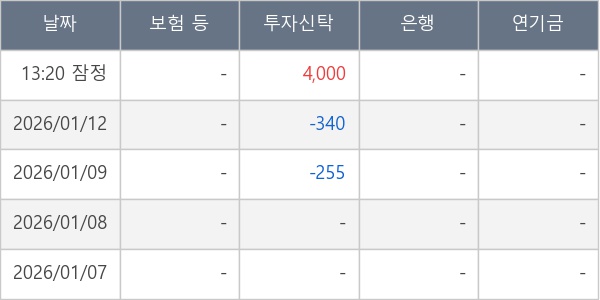 [표] 주요 기관별 순매매량 (단위 주)