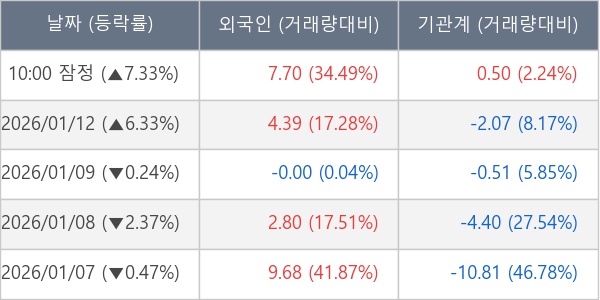 [표] 주요 기관별 순매매량 (단위 만주)