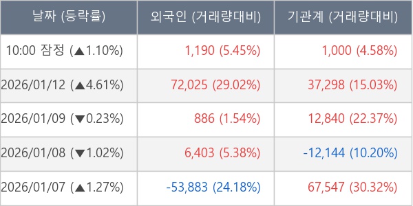[표] 외국인ㆍ기관 순매매량 (단위 주)