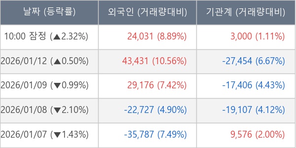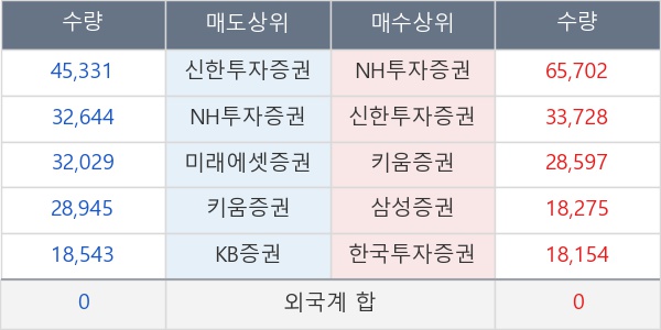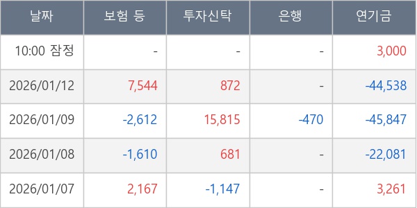 [표] 주요 기관별 순매매량 (단위 주)