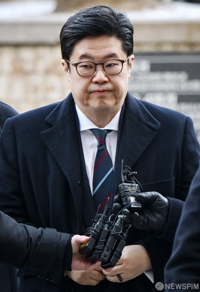 [서울=뉴스핌] 정일구 기자 = '홈플러스 사태'와 관련 사기 혐의를 받는 김병주 MBK파트너스 회장이 13일 오전 서울 서초구 서울중앙지방법원에서 열린 구속 전 피의자 심문(영장실질심사)에 출석하고 있다. 2026.01.13 mironj19@newspim.com