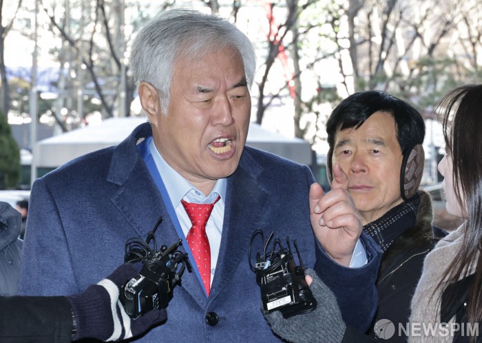 [서울=뉴스핌] 양윤모 기자 = 특수공무집행방해 교사 등의 혐의로 구속영장이 청구된 전광훈 사랑제일교회 목사가 13일 오전 서울서부지법에서 개최된 구속 전 피의자 심문(영장실질심사)에 출석하고 있다. 전 목사는 윤석열 전 대통령 지지자들을 부추겨 지난해 1월 19일 윤 전 대통령이 구속된 직후 영장을 발부한 서울서부지법에 난입해 집기를 부수고 경찰을 폭행하게 한 혐의를 받는다. 2026.01.13 yym58@newspim.com
