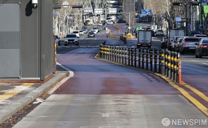 [서울=뉴스핌] 양윤모 기자 = 13일 서울시버스 노사의 임금협상 결렬로 노조가 총파업에 돌입하며 버스가 운행을 멈춘 가운데, 버스정류장에 정적만 흐르고 있다. 서울시내버스는 64개사 394개 노선에서 7천382대가 운행 중이다. 2026.01.13 yym58@newspim.com