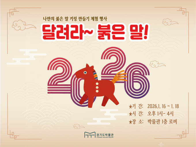 [수원=뉴스핌] 박노훈 기자 = 경기문화재단 경기도박물관은 병오년 새해를 맞아 관람객을 위한 체험형 교육행사 '달려라~ 붉은 말!'을 1월 16일부터 18일까지 3일간 박물관 로비에서 운영한다고 14일 밝혔다.