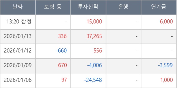 ※ 장중 매매동향은 잠정치이므로 실제 매매동향과 차이가 발생할수 있음