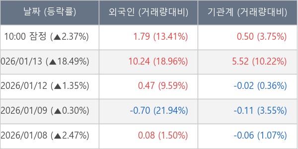 [표] 주요 기관별 순매매량 (단위 만주)