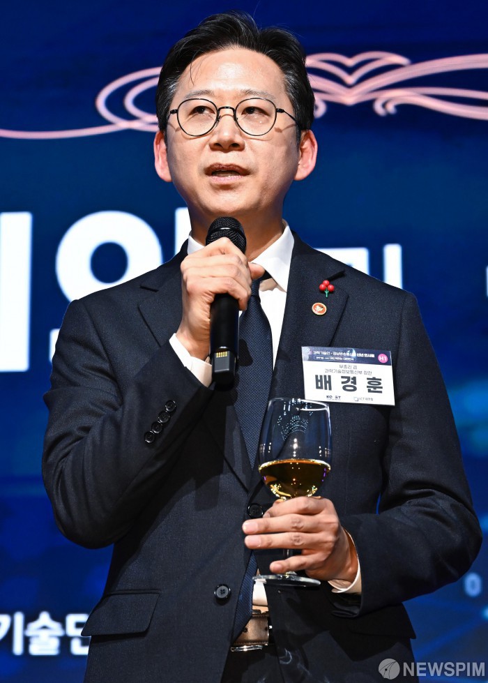 [서울=뉴스핌] 정일구 기자 = 배경훈 부총리 겸 과학기술정보통신부 장관이 14일 오후 서울 강남구 한국과학기술회관에서 열린 2026 과학기술인·정보방송통신인 신년인사회에서 건배제의를 하고 있다. 2026.01.14 mironj19@newspim.com