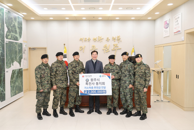 [원주=뉴스핌] 이형섭 기자 = 강원 원주시 특전사 동지회는 지난 13일 원주시청을 방문해 '2026 희망나눔 성금'으로 저소득층 지원금 200만 원을 기탁했다.