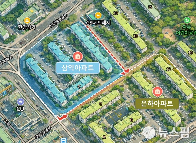 은하아파트와 삼익아파트는 여의도 재건축 단지 중에서도 독특한 위상을 차지한다. 두 단지 모두 4개 동, 360가구 규모로 이뤄져 있으며, 전 가구가 전용 121㎡ 단일 평형으로 구성됐다는 공통점을 갖고 있다. 입지 조건과 단지 스펙이 사실상 동일하기 때문에 개별적으로 시공사를 선정해 브랜드를 달리하는 것보다, 하나의 건설사가 통합 시공을 맡아 대단지 브랜드 타운을 형성하는 것이 자산 가치 상승에 유리하다는 판단이 작용한 것으로 보인다.