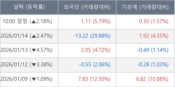 [표] 외국인ㆍ기관 순매매량 (단위 만주)