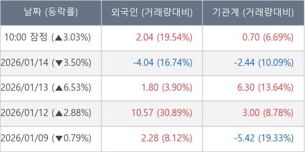 [표] 주요 기관별 순매매량 (단위 만주)