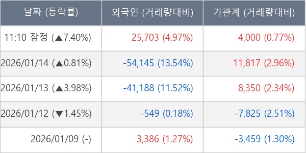 [장중수급포착] 로보티즈, 외국인/기관 동시 순매수… 주가 +7.40%