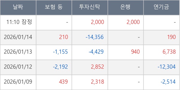 ※ 사모펀드 등 일부 기관의 순매매량은 표시되지 않음
