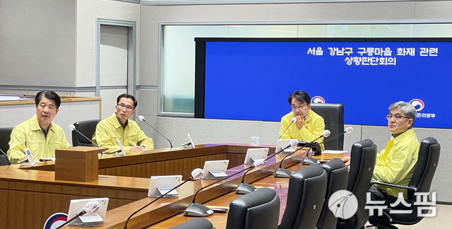 [서울=뉴스핌] 김기락 기자 = 김광용 행정안전부 재난안전관리본부장이 16일 정부서울청사 상황실에서 서울 강남구 구룡마을 화재 관련 상황판단회의를 주재하고, 주민 대피 및 화재 진압 상황 등을 확인하고 있다.