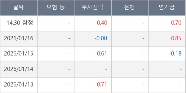 [표] 주요 기관별 순매매량 (단위 만주)