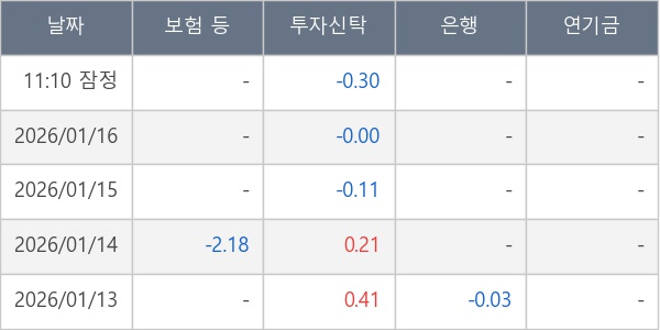 [표] 주요 기관별 순매매량 (단위 만주)