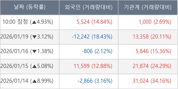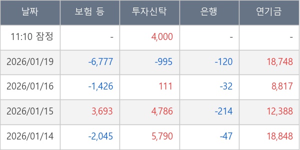 [표] 주요 기관별 순매매량 (단위 주)