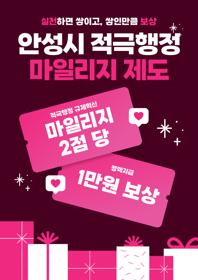 [안성=뉴스핌] 이석구 기자 = 경기 안성시가 불합리한 규제 개선과 시민 불편 해소를 위한 적극행정 실천을 보상하기 위해 '2026년 적극행정 마일리지 제도'를 운영한다.