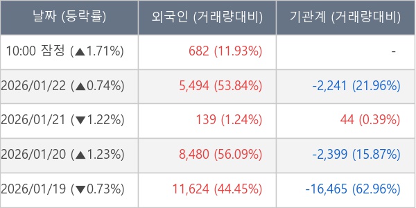 [표] 외국인ㆍ기관 순매매량 (단위 주)