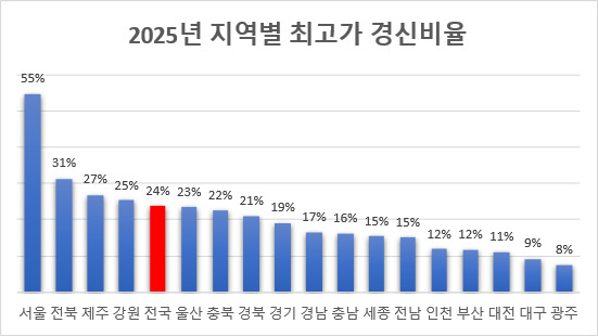 2025년 최고가 갱신비율 [자료=리얼투데이]