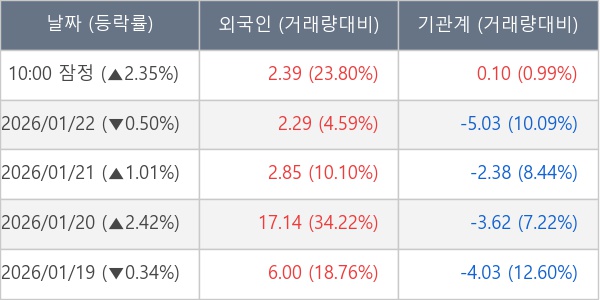 [표] 주요 기관별 순매매량 (단위 만주)