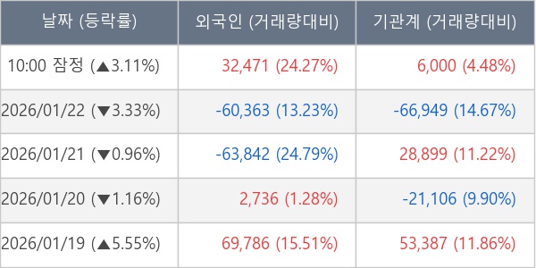 [표] 외국인ㆍ기관 순매매량 (단위 주)