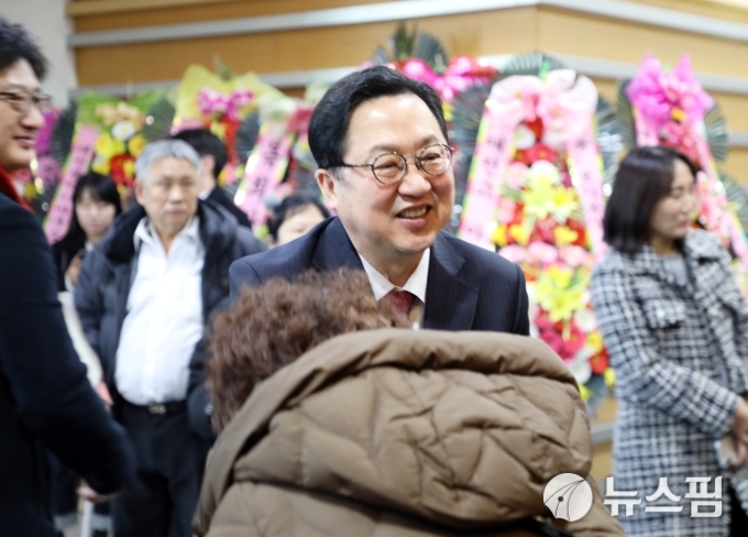 [대전=뉴스핌] 김수진 기자 = 이장우 대전시장이 24일 조원휘 대전시의장 출판기념회 후 참석자들과 인사를 하고 있다. 2026.01.24 nn0416@newspim.com