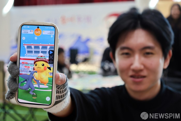 [서울=뉴스핌] 25일 휴일을 맞아 강추위에도 불구하고 강원도 평창군 진부면 오대천 일원에 열린 평창송어축제를 찾은 국내외 방문객들이 리얼 월드 게임 '포켓몬GO(Pokémon GO)' 특별 이벤트 '피카츄의 사계여행: 새하얀 겨울 나들이'를 즐기고 있다. [사진=평창관광문화재단] 2026.01.15 photo@newspim.com