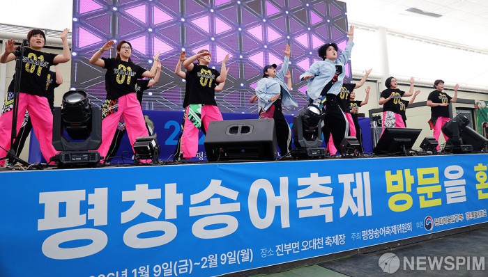 [서울=뉴스핌] 25일 휴일을 맞아 강추위에도 불구하고 강원도 평창군 진부면 오대천 일원에 열린 평창송어축제 찾은 방문객들을 대상으로 열정넘치는 줌바댄스공연이 펼쳐지고 있다. ‘겨울이 더즐거운 송어 나라, 평창’이라는 주제로 열린 올해 축제는 송어낚시를 넘어 전시·문화·휴식 콘텐츠를 강화한 겨울 종합 관광축제로 내달 9일 까지 방문객을 맞는다. [사진=평창관광문화재단] 2026.01.15 photo@newspim.com