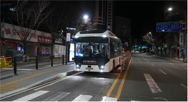 부산시, '야간 자율주행버스' 첫 운행…내성~중동 BRT 심야 서비스 개시