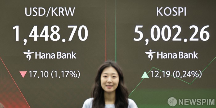 [서울=뉴스핌] 양윤모 기자 = 26일 오전 코스피가 전장 종가보다 12.19 포인트(0.24%) 상승하며 5002.26으로, 코스닥은 12.35포인트(1.24%) 상승한 1006.28로 장을 시작한 가운데, 서울 중구 하나은행본점 딜링룸에서 직원들이 업무를 보고 있다. 서울외환시장에서 달러/원 환율은 전장 대비 17.10원 하락한 1448.70원에 주간거래를 시작했다. 2026.01.26 yym58@newspim.com