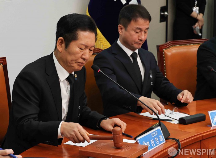 [서울=뉴스핌] 윤창빈 기자 = 정청래 더불어민주당 대표가 26일 서울 여의도 국회에서 열린 최고위원회의에서 의사봉을 두드리고 있다. 2026.01.26 pangbin@newspim.com