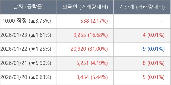 [표] 외국인ㆍ기관 순매매량 (단위 주)
