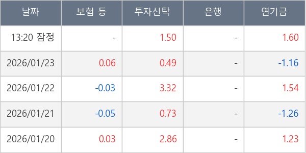 [표] 주요 기관별 순매매량 (단위 만주)