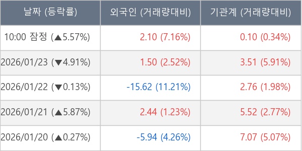 [표] 주요 기관별 순매매량 (단위 만주)