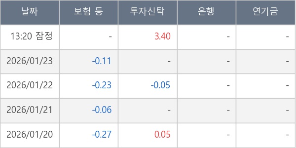 [표] 주요 기관별 순매매량 (단위 주)