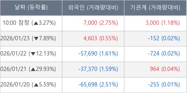 [표] 주요 기관별 순매매량 (단위 주)