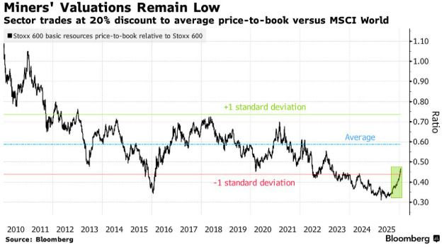 이 같은 초과 성과는 변동성 높은 원자재 가격과 세계 최대 금속 소비국인 중국의 성장 둔화 우려로 광산 섹터가 외면받았던 과거 수년과 극명히 대비된다. 그러나 빅테크와 금융주에 집중 투자했던 펀드매니저들은 이제 금리 인하를 포함한 경제 부양 공약을 내세운 중국 정부의 약속에 안도하는 모습이다.