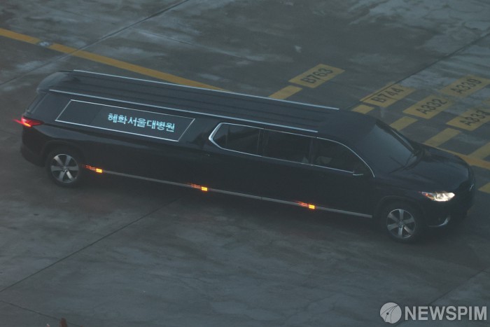 [영종도=뉴스핌] 류기찬 기자 = 고(故) 이해찬 전 국무총리(민주평화통일자문회의 수석부의장)의 시신을 실은 운구 행렬이 27일 오전 인천국제공항 제2여객터미널을 빠져나오고 있다. 2026.01.27 ryuchan0925@newspim.com