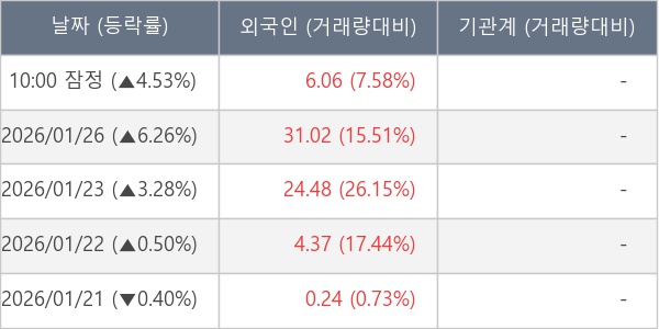 [표] 외국인ㆍ기관 순매매량 (단위 만주)