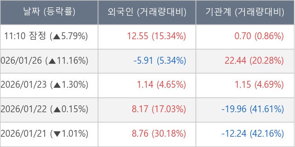 [표] 외국인ㆍ기관 순매매량 (단위 만주)